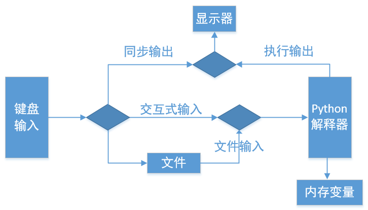 当我们通过键盘向Python解释器或者文件作输入操作时,输入流会同步到显示器,显示器和Python解释器收到相同的字符后,各自采用自己的方式进行处理,当我们通过键盘输入普通字符,例如a,b,c等,显示器会原样输出到屏幕上,Python解释器或者文件也会原样保存到内存,这一点比较好理解,当输入特殊字符enter,tab等键时,显示器和Python解释器会采用不同的处理方式,下面以回车键为例,Python中回车键主要用在两个地方,语句的结束换行,和变量的赋值,现在分别来阐述一下。