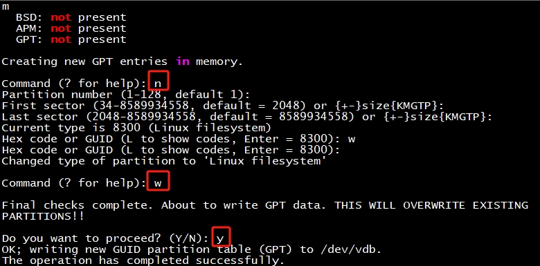 gdisk /dev/vdb